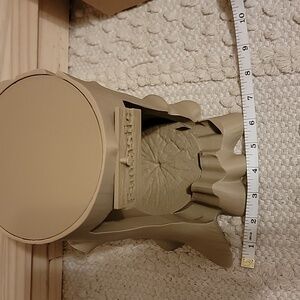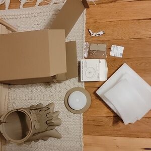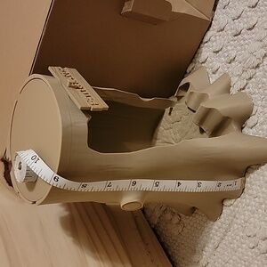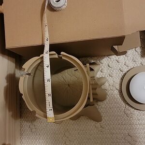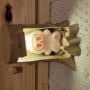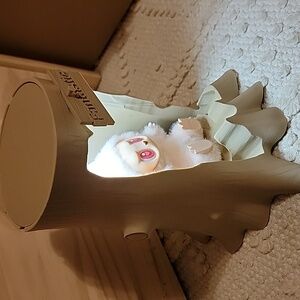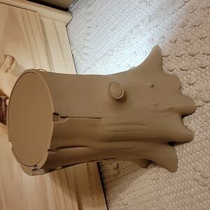 Cute display stand for Labubu (doll not included) that's in the shape of a stump, perfect for that mischievous little elf buddy. Included is a light that attaches to the ceiling of the stump, or on your wall; and it glows in three different options of shade: warm yellow, natural, and cool. The light is removable and rechargeable. Brand new. 5 inches wide by 9 inches tall. 7 inches wide at the root base. It's a sandy light brown color.