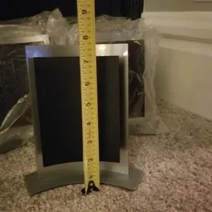 Set of 9 display frames. Material is plastic and measurements in pics. Can be utilized to your creative design using pictures, florals, or whatever you decide.