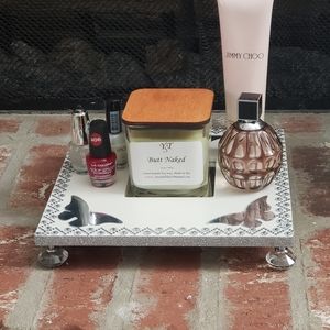 10x10 display stand with 4x4 mirror bling in butterflies & silver bling, crystal legs.