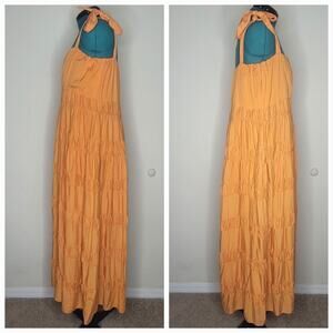 Dissh Amma Marigold Tie Midi Dress Linen Tencel Blend Sustainable US 10 / AU 14