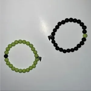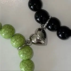 Handmade with 8mm acrylic green howlite, black beads & a magnetic silver heart clasp.