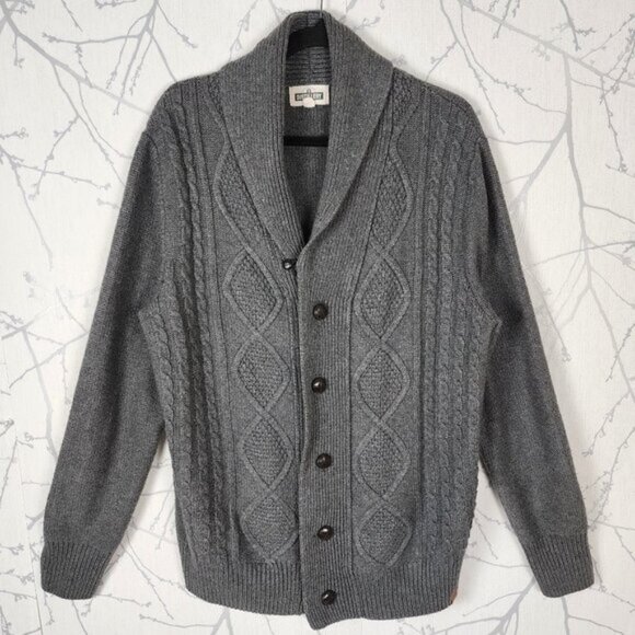 Distillery 30% Wool Cable Knit Shawl Collar Button Front Cardigan