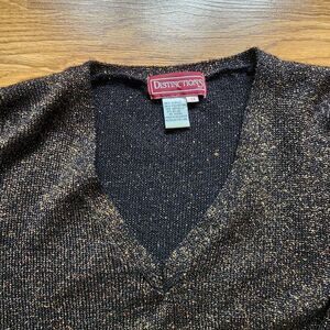 Distinctions Pullover V-Neck Sweater Womens Size 3XL Black Gold Glitter