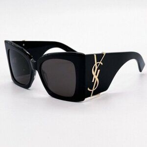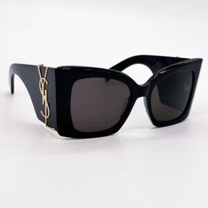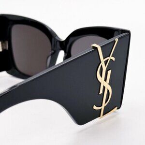 Showcase your distinctive style with YSL black square shades. The bold geometric frame and radiant gold YSL logo ensure a memorable and chic appearance.