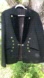 Metal coil w raised eagle coil buttons & metal chain front closure