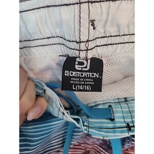 Distortion Boys Swim Trunks L Blue Orange Palm Floral Board Shorts Lined EUC