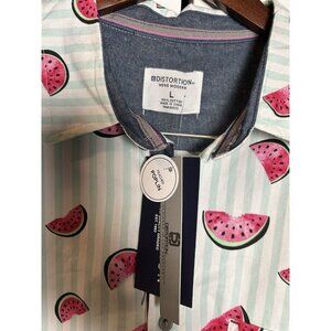 Distortion Mens Button Down Blue Striped Watermelon Print Shirt Size Large Nwt