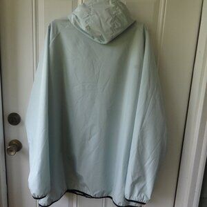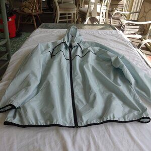 Distortion women's size 2XLT, wind breaker, light blue with black trim, hooded