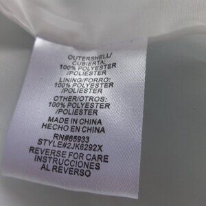 polyester outside and inside, light weight, front zipper, machine washable, tie string for hood