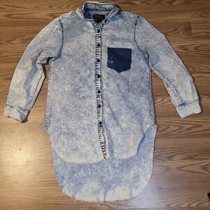 This cool vintage-styled acid-washed denim shirt can be worn as a shirt or a jacket and is heavily distressed for a casual look. Size XL by Thrill.