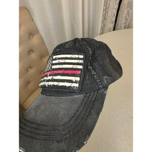 Distressed American Flag Black Hat With Thin Red Line - KBETHOS One Size 100% Co