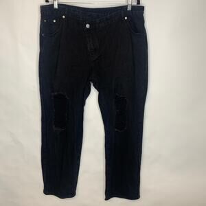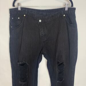 Distressed Asymmetric Front Zip Black Jeans Sz XXL
