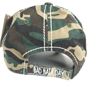 Vintage Distressed "Bad Hair Day" Embroidered Baseball Cap. Such a well made hat and perfect for those not so great hair days ;-) - One size fits most - Adjustable Velcro closure with BAD HAIR DAY embroidered on strap - 100% Cotton Color: Camouflage See other listing for Moss color