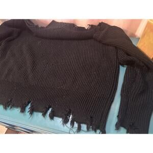 Distressed Black Off-Shoulder Sweater – Size M (By Daytrip)