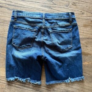 Stylish distressed denim shorts in a classic blue shade. Perfect for casual outings and summer days.