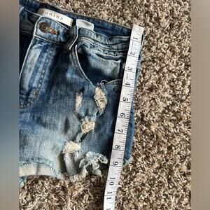 Stylish distressed denim shorts in a classic blue shade. Perfect for casual outings.