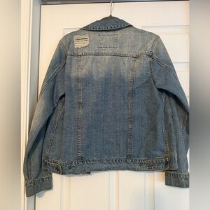 Stylish distressed blue jean jacket perfect for casual outings. Features a classic design with a modern twist.