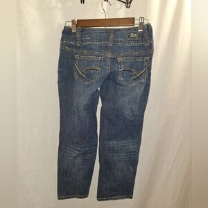 Stylish distressed blue jeans with button details. Perfect for casual wear.side to side measurements is 14" with stretch rise is 7.5" inseam is 23.5" top of waist to bottom hem is 31" bundle more items for bigger deals Bin-128