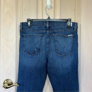 Stylish distressed blue jeans perfect for any casual outing. Comfortable fit with a trendy look.