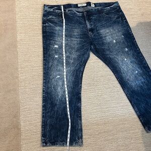 Stylish distressed blue jeans with a classic look. Perfect for casual wear.
