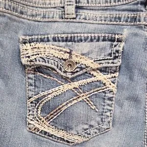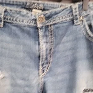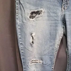 Stylish distressed blue jeans perfect for a casual look. Comfortable and trendy, ideal for everyday wear.