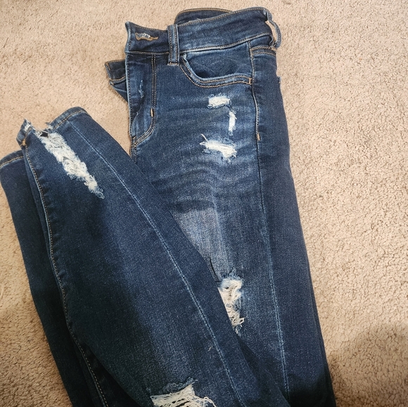 Stylish distressed blue jeans with a trendy look. Only worn once and is in perfect condition