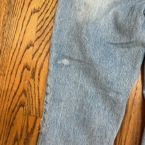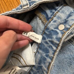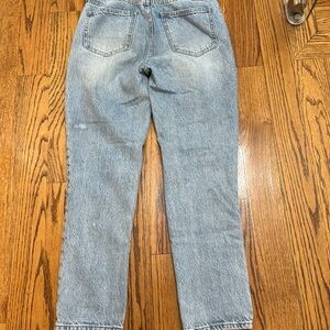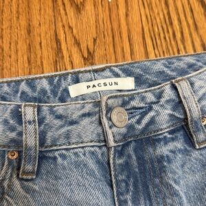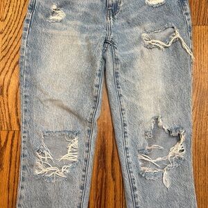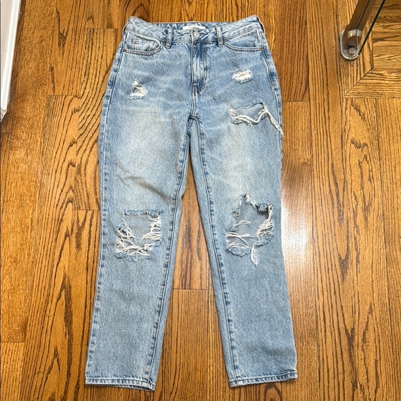 Stylish distressed blue jeans perfect for a casual look. Comfortable and trendy, these jeans are a must-have for any wardrobe. They are PacSun mom jeans in size 25. They are gently worn.