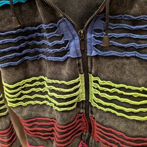 Colorful Zip-up hoodie, with distressed gray fabric. 100 percent cotton!