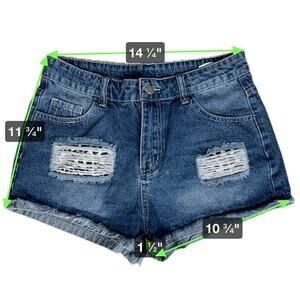 Unbranded Distressed Blue Jean Shorts Women's Medium Leopard Pockets Frayed Cuff High Waist