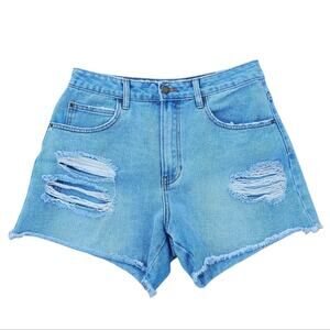 Distressed Cotton Denim Shorts Billabong How Bout That Size 30 Frayed High Rise