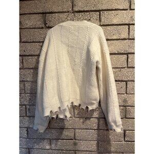 Distressed Cream Open Knit Cardigan Sweater Medium POL Soft Acrylic Blend Womens