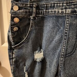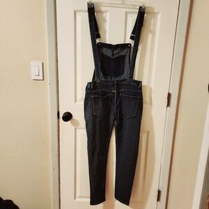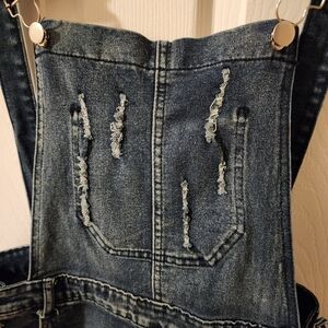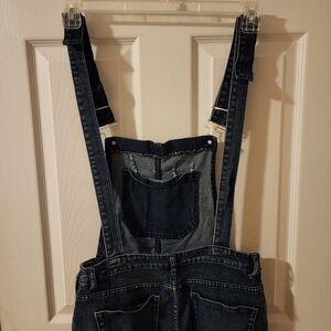 Distressed Dark Wash Denim Overalls Women's Small Inside Pocket Open Back