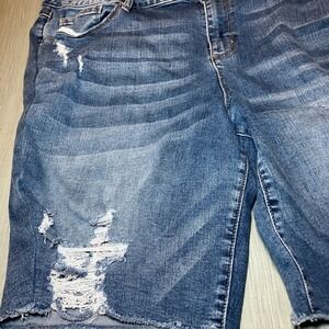 Distressed Denim Bermuda Shorts Womens Size 22 Blue Ripped Frayed Hem