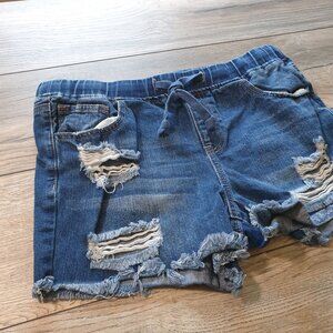 Distressed Denim Elastic Waist Pull On Shorts YMI Dream Medium 32" Waist Women