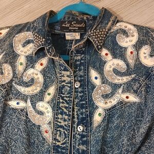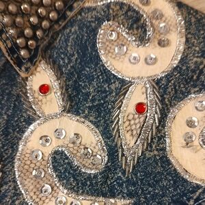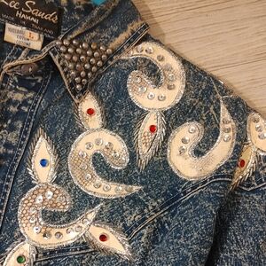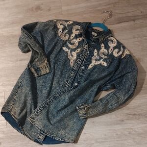 Distressed Denim Embellished Jacket SZ Large