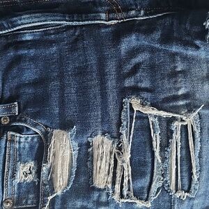 These trendy distressed denim shorts are perfect for casual outings. Features a stylish ripped design for a modern look.