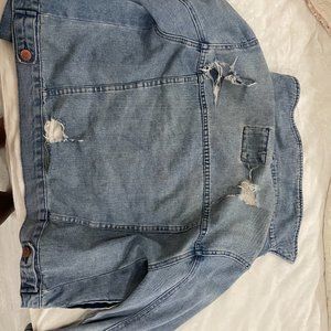 Distressed denim jacket. Only worn twice - still in like-new condition. The jacket is distressed so please note all the tears/rips in the pictures.