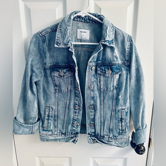 I love this jacket!! Just doesn’t fit me properly. Super cute distressed denim jacket. Worn only a couple times. Smoke free home