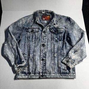 XL-sized jacket features a distressed look for a trendy edge. Perfect for both men and women, this classic jean jacket is designed with a regular fit and is sure to be a timeless piece in your closet. The stonewash blue color adds a unique touch to the wardrobe staple, making it a standout piece for any casual outfit.