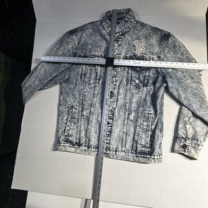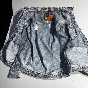Distressed Denim Jacket Rolling Papers Jean Jacket in Stonewash Blue Denim
