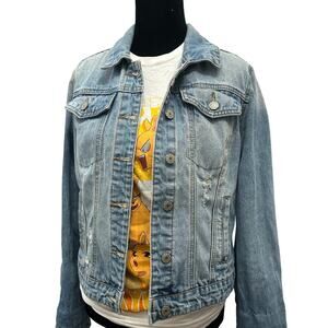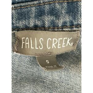 Classic light wash denim jacket by Falls Creek. Features subtle distressed details, metal hardware, chest flap pockets, and a slightly cropped fit. Soft but structured — perfect for layering over dresses, tees, or flannels. A timeless wardrobe essential for fall. Women’s size Small.