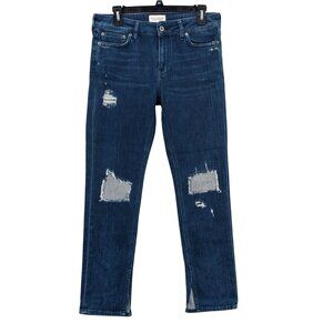 Distressed Denim Jeans Women Size 30 Straight Leg Slim Patchwork Grunge Y2K Rip