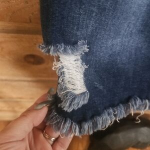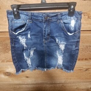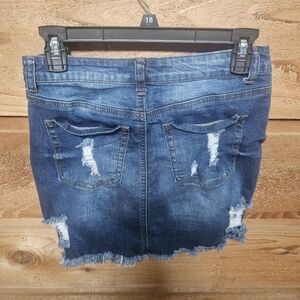 Elevate your style with this chic distressed denim mini skirt. Perfect for casual outings, this blue skirt adds a trendy touch to any outfit.