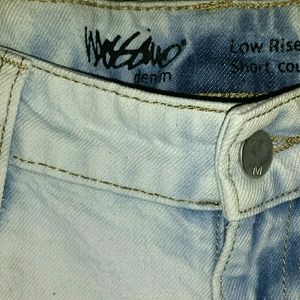 Low rise distress denim shorts. Perfect for the summer. Fits comfortably and tight.