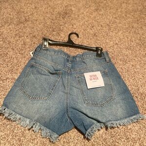 Elevate your casual style with these ultra high rise distressed denim shorts. Perfect for a chic, laid-back look.