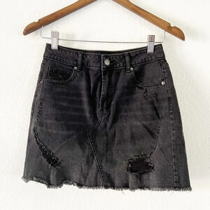 Distressed Denim Skirt Black Mini Skirt Deconstructed Size 2 Wild Fable