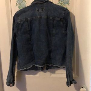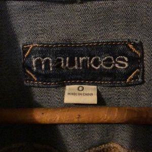 Cute, like new Maurice’s jean jacket! Distressed with a slight ombré affect, this jacket is the perfect thing to throw on for any sort of outing. It even has pockets! Your phone won’t fit in them but your hands will. Super cute