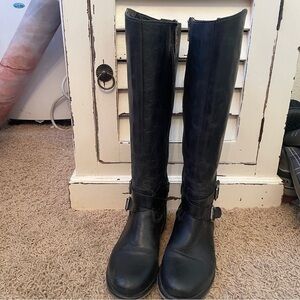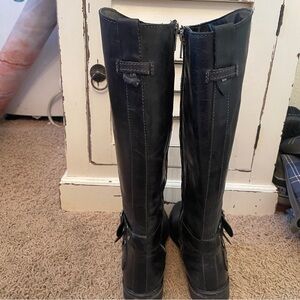 Distressed Devin Black Leather Tall Riding Boots Hinge size 6 side zip knee high