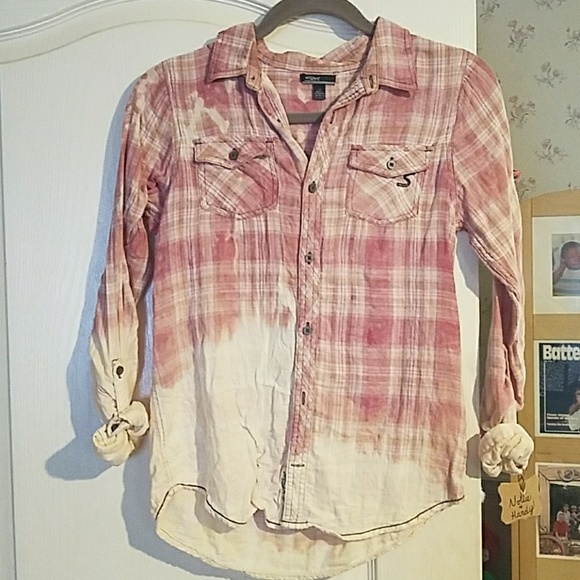 This shirt was Upcycled by my company Nollie and Hardy. Each item is indivually hand made. Acid Washed Button Down
