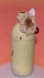 Handcrafted distressed decorative pale yellow bottle with embellishments.